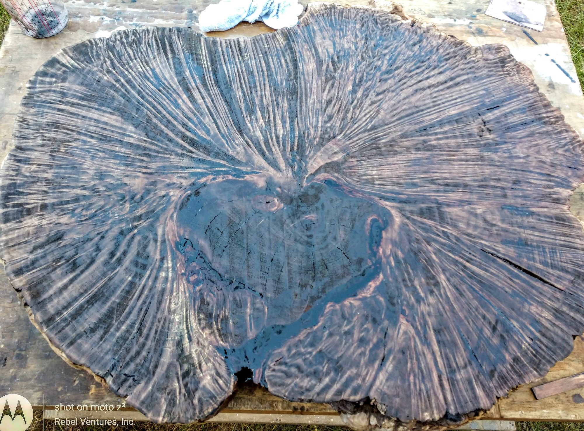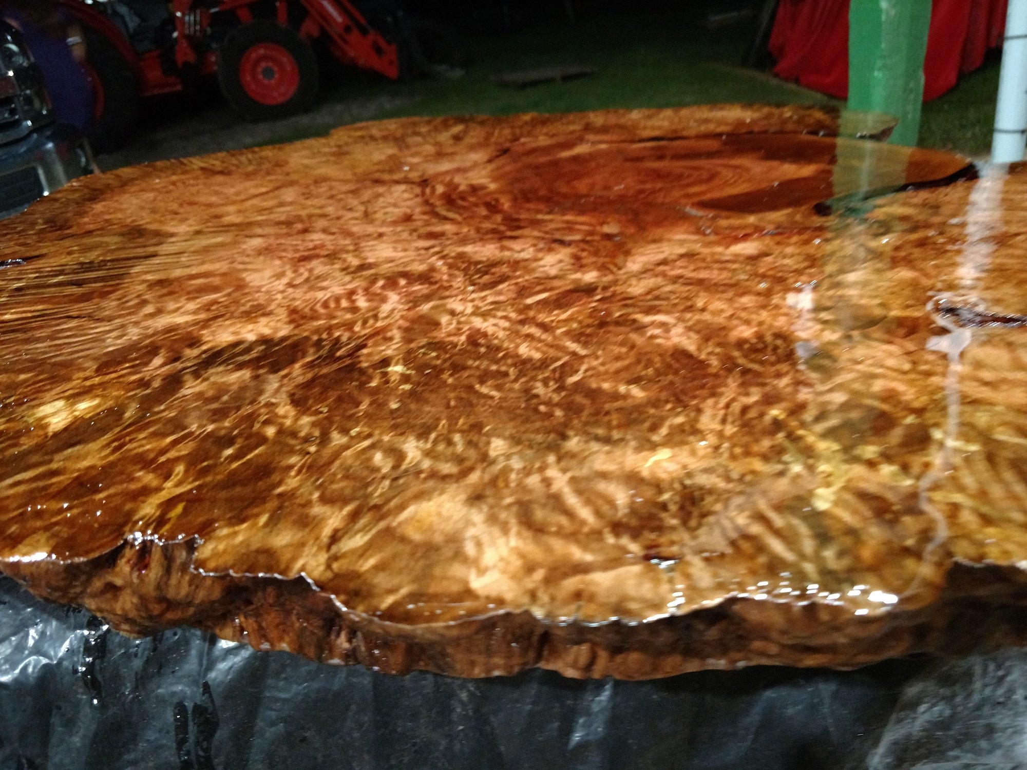 This one is displayed on a tung tree crotch for table legs.